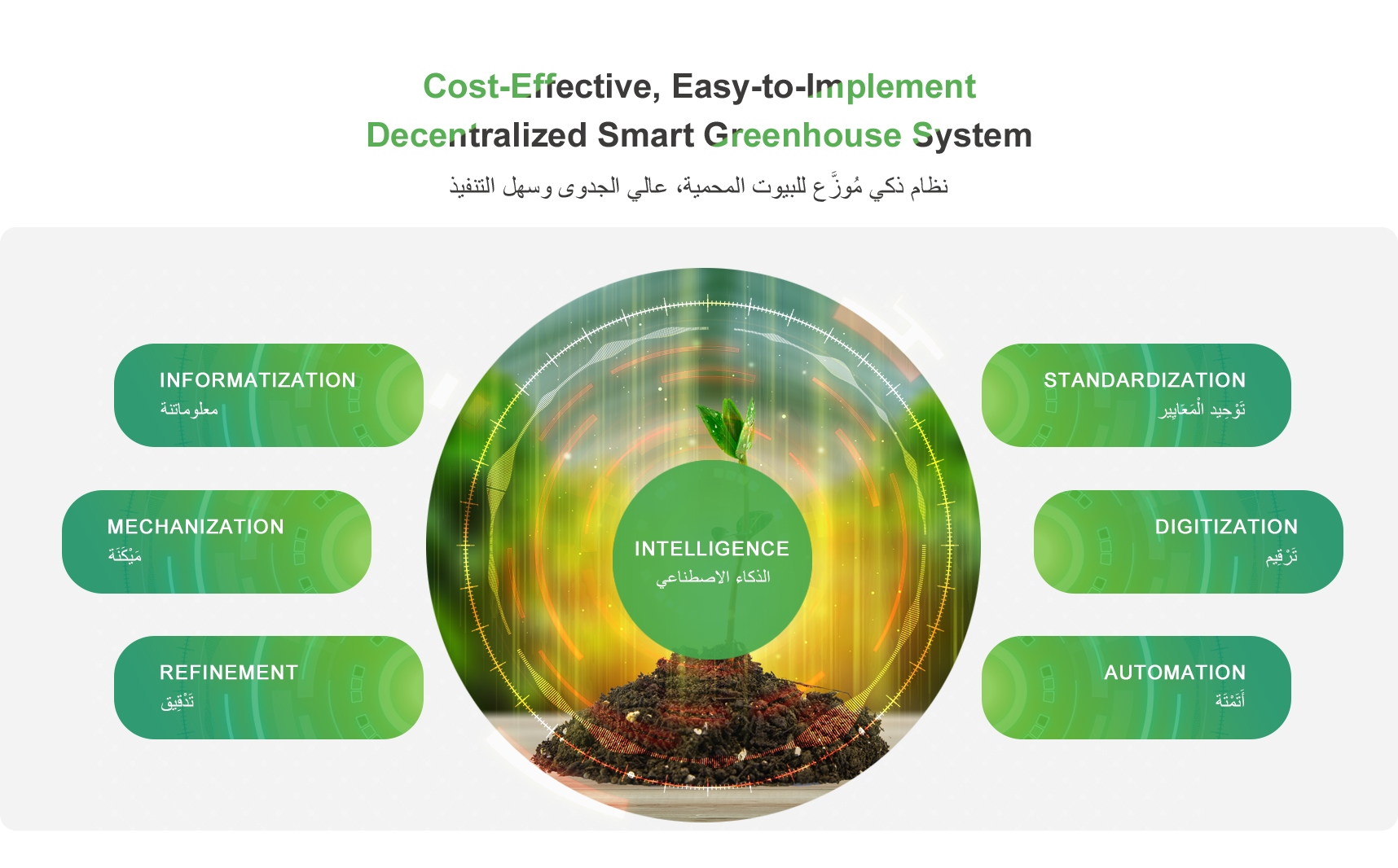 يُسَجِّلُ النِّظَامُ دَوْرَةَ حَيَاةِ الْمَحَاصِيلِ كَامِلَةً مِنَ الزَّرْعِ إِلَى الْحَصَادِ. وَيَشْمَلُ ذَلِكَ خَطَّ زَمَنِيًّا لِلْأَحْدَاثِ مِثْلَ رَشِّ الْمُبِيدَاتِ وَالرَّيِّ وَالتَّسْمِيدِ، بِالإِضَافَةِ إِلَى مُنْحَنَيَاتِ مُعَامِلَاتِ النُّمُوِّ مِثْلَ الضَّوْءِ وَدَرَجَةِ الْحَرَارَةِ وَالرُّطُوبَةِ وَدَرَجَةِ حَرَارَةِ التُّرْبَةِ وَرُطُوبَتِهَا. وَيُمْكِنُ لِلْمُسْتَخْدِمِ تَعْقِيبُ مَصْدَرِ الْمَحْصُولِ بِمَسْحِ رَمْزِ التَّتَبُّعِ ضَوْئِيًّا.