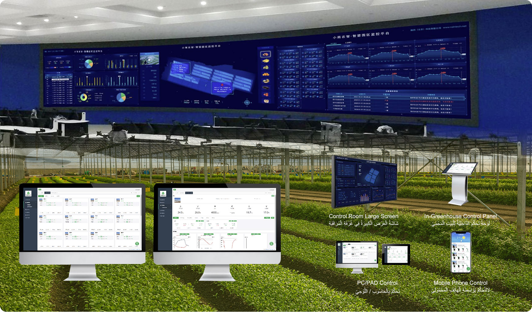The system documents the entire lifecycle of crops from planting to harvest. This includes a timeline of events such as pesticide application, irrigation, and fertilization, as well as curves of growth parameters like light, temperature, humidity, soil temperature, and soil moisture. Users can trace the origin by scanning a traceability code.